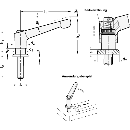 GN 307 Leva di bloccaggio regolabile, pressofusione di zinco, con