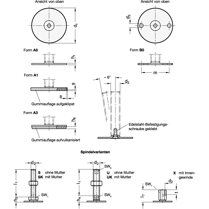 GN 40 Galvanized Steel Adjustable Feet for Machinery & Industrial Equipment