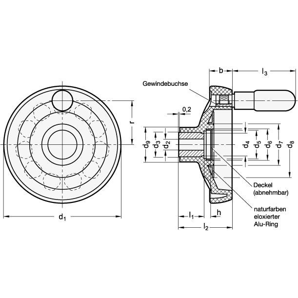 GN 522.8 Volanti a raggi per indicatori di posizione