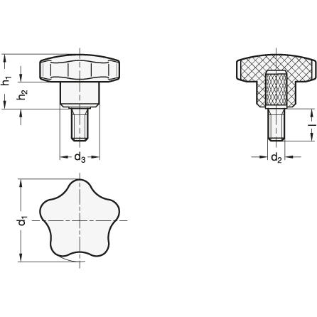 GN 5337.5 Viti a maniglia a stella con filettatura in acciaio inossidabile