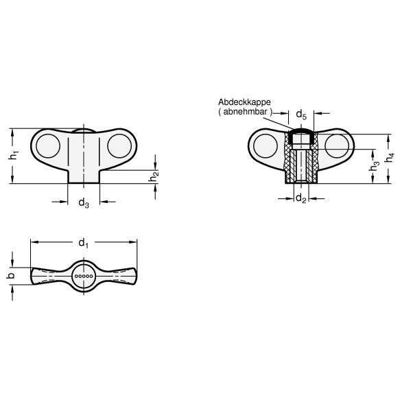 GN 634.1 Dadi a Farfalla con Manicotto in Acciaio Inossidabile