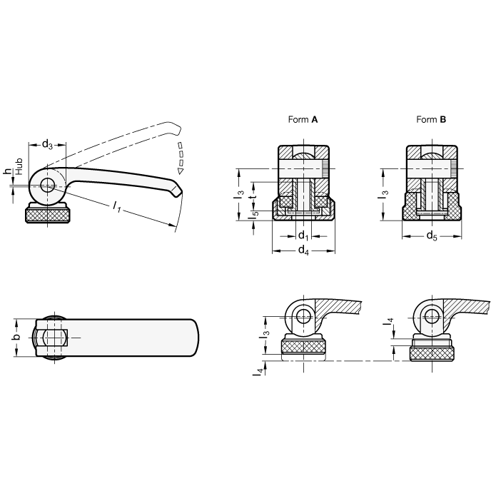 GN 927 Chiave a eccentricità con filettatura interna, leva in zinco