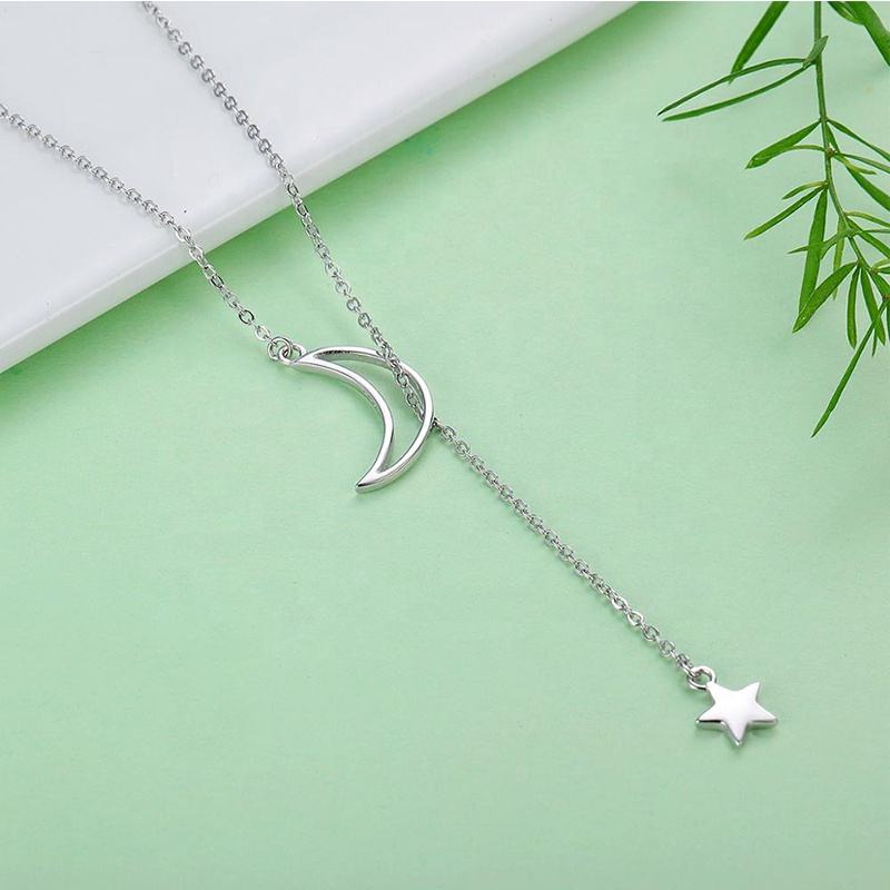 GN03 Fashion New Arrivals Custom 925 Sterling Silver Lariat Moon Star Pendant Long Necklace for Women Jewelry