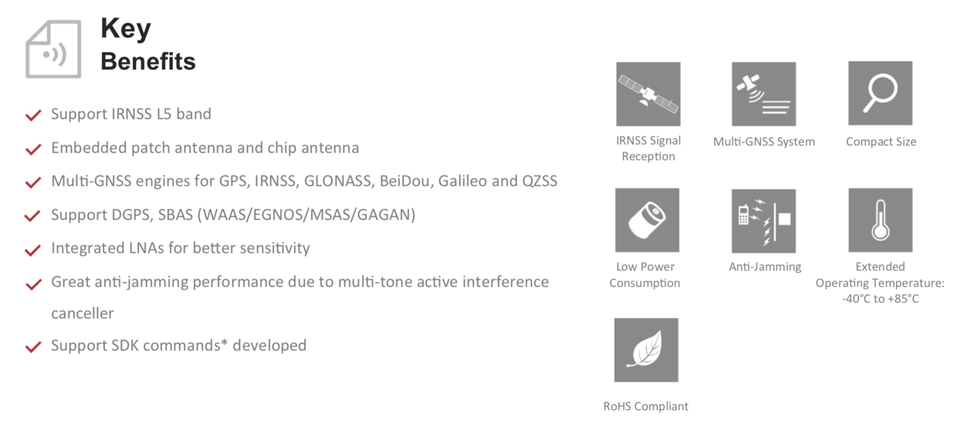 GNSS L89 L89-S90 is a high performance IRNSS-enabled GNSS module, capable of acquiring and tracking GPS, IRNSS, GLONASS, BeiDou