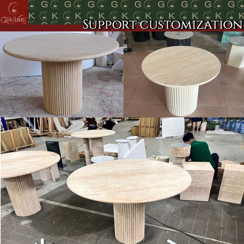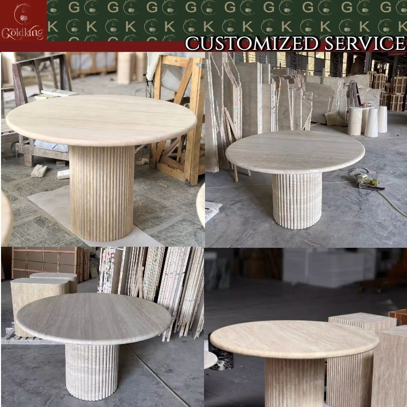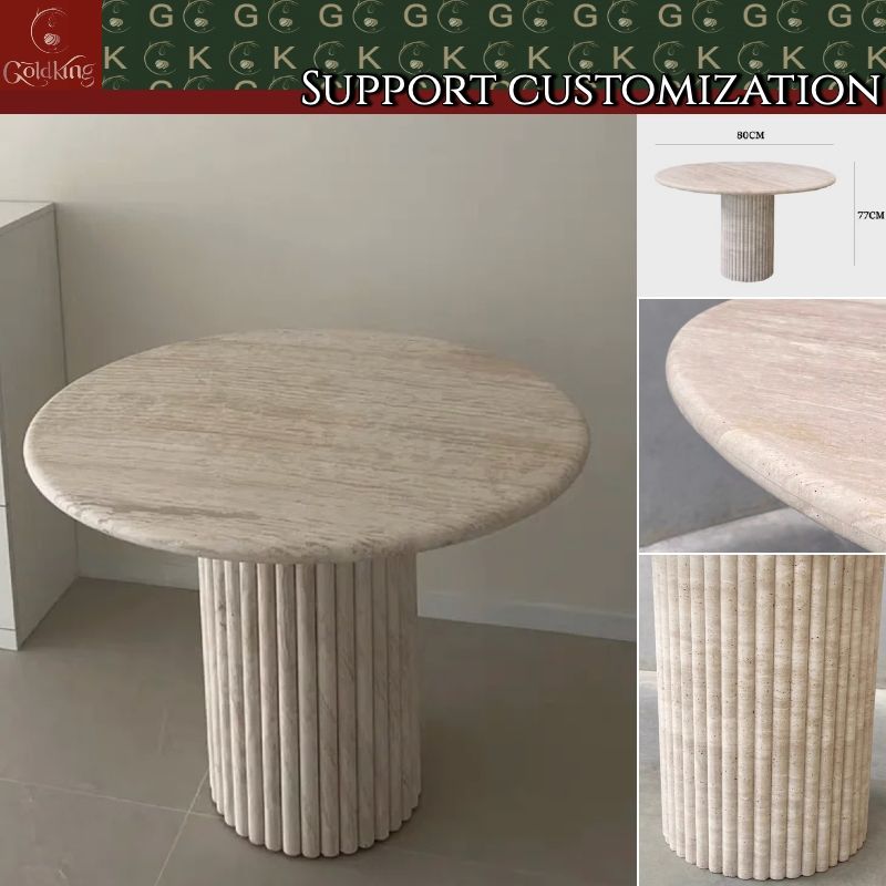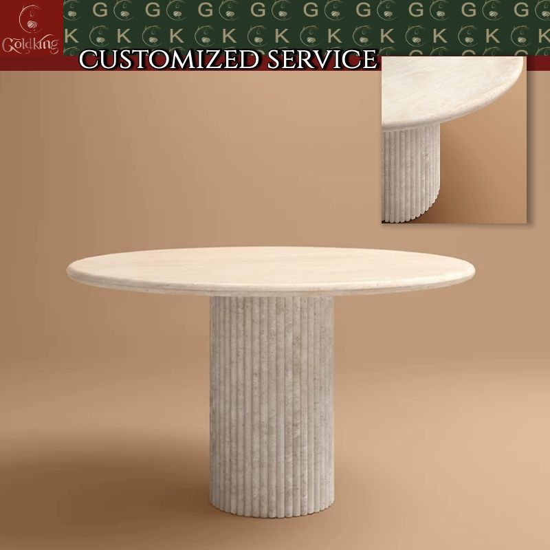 Tavolo da Pranzo in Travertino GOLDKING, Tavolo Rotondo in Pietra Beige per Cucina Moderna, Arredamento Elegante Fatto su Misura