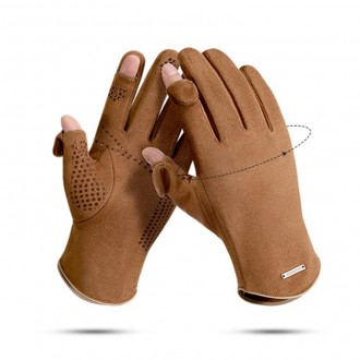 GOLOV Men's Two-Finger Open Non-Slip Fitness Gloves Winter Suede Gloves for Outdoor Work Activities Fashionable Design-Dy45