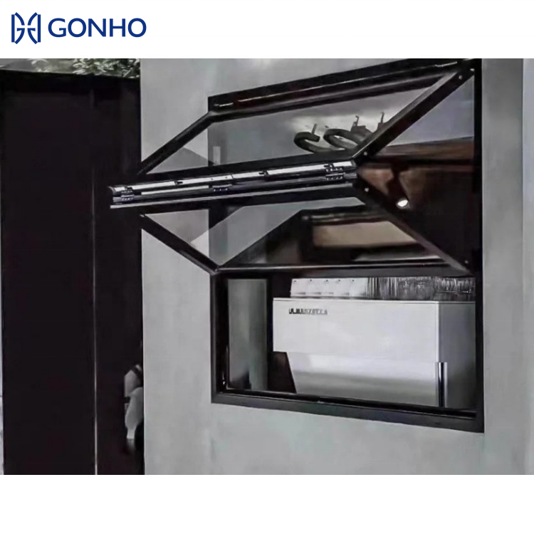 GONHO High Quality Vertical Fold up Windows Aluminum Tempered Glass Security Folding Window Grill Double Flap Folding Window