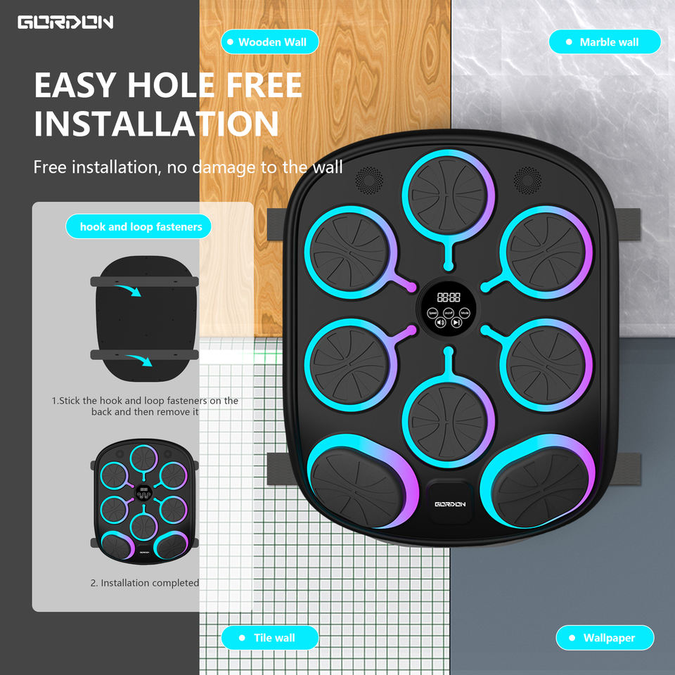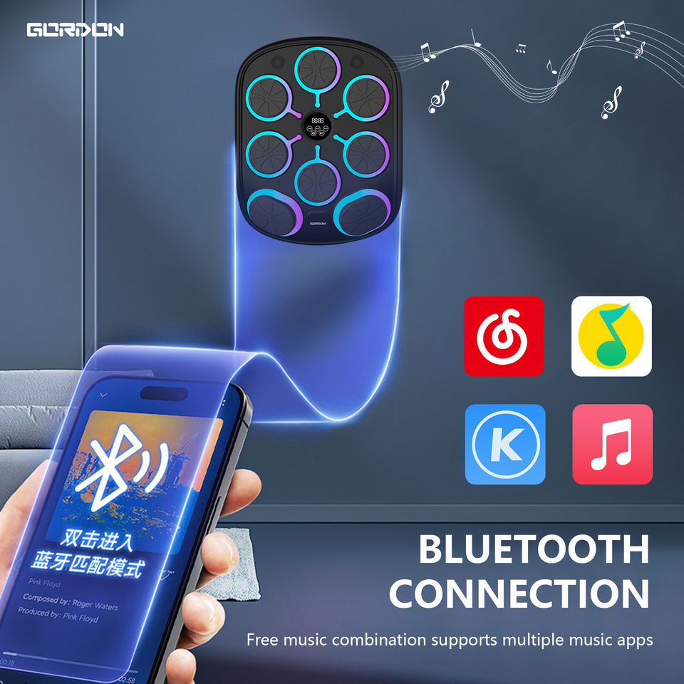 GORDON Macchina da Allenamento Boxe Musicale da 4000mAh per Adulti con Guantoni da Boxe e Sacco da Pugilato Nuovo Stile Campione Gratuito Macchina da Boxe Musicale