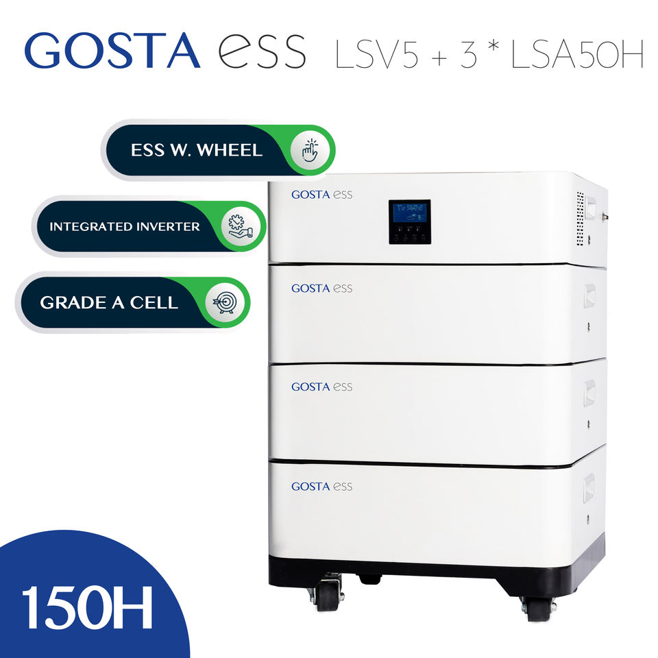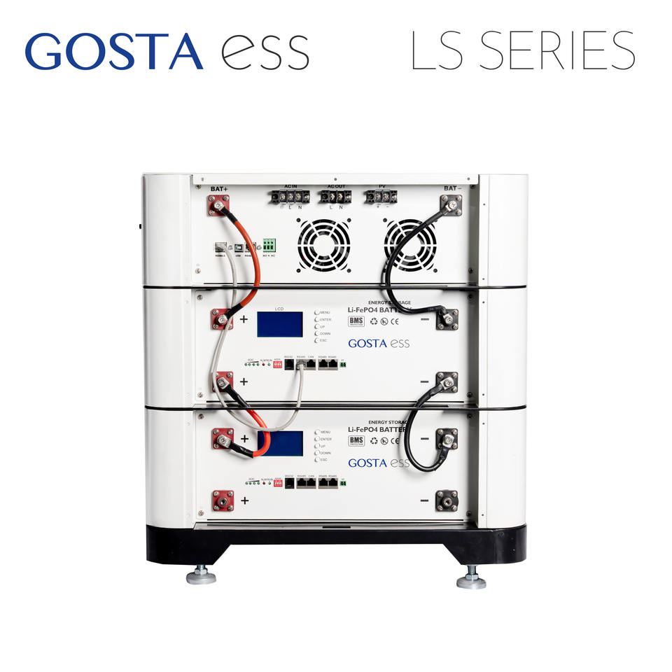 Inverter Fotovoltaico GOSTA LS50H X3 e LSV-5 da 5KW con Batteria ESS AIO da 48V 51.2V 100AH su Ruote a Ricarica Rapida e Batterie Impilabili