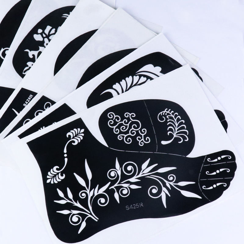 GP Stock riutilizzabile temporaneo henné tatuaggio Stencil Sexy dito piedi Design per le donne ragazze marrone rosso bordeaux Body Art