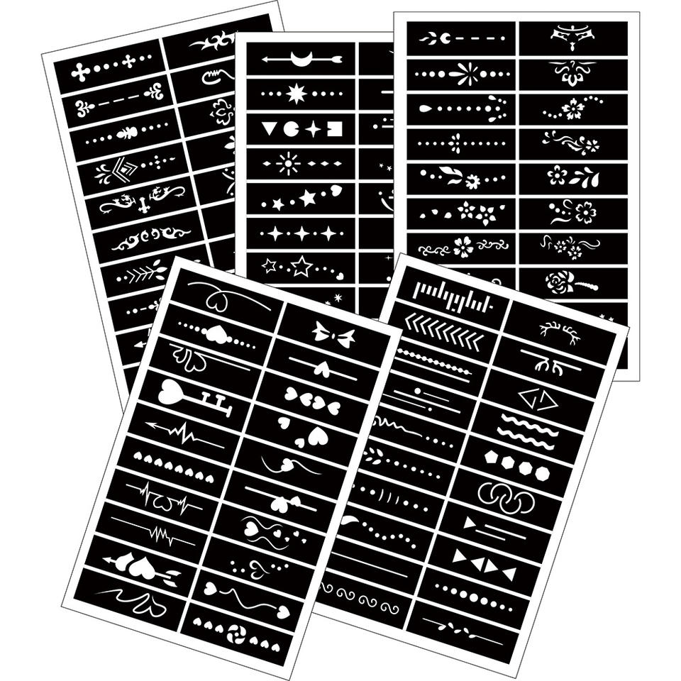 GP Wholesale Self-Adhesive Finger Nail Art Stencils Reusable Tattoo and Henna Painting Templates Temporary Face Application