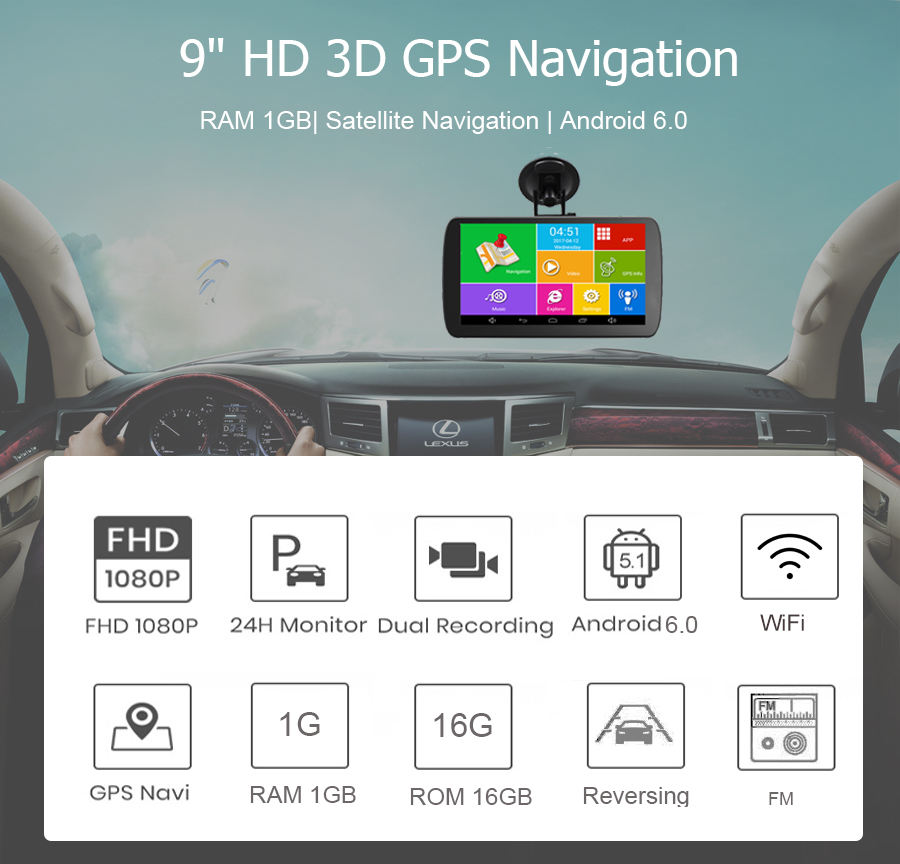 Touch Screen, MP3/MP4, Visore della foto, Caricabatteria da auto, 3D MAPPA, Wi-FiFunzione