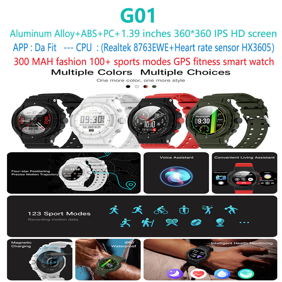 Orologio intelligente GPS orologio sportivo G01 1.39 pollici assistente vocale Smart Watch Outdoor Relojes Inteligentes