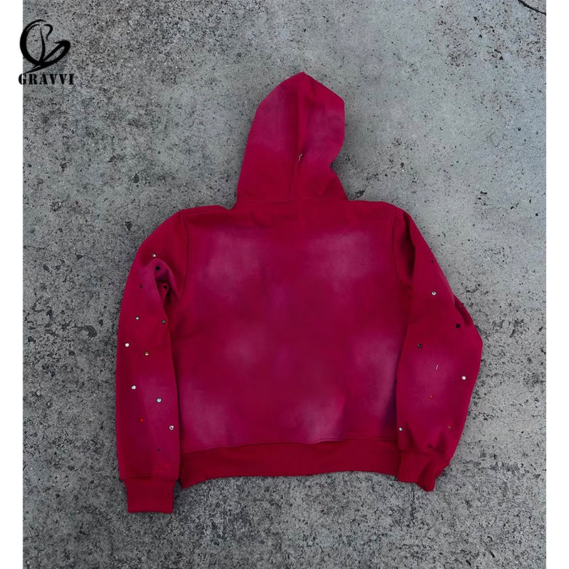 Felpa con Zip GRAVVI Personalizzata Solo per Membri, Streetwear con Strass, Felpa Oversize Viola con Dettagli Borchiati per Uomo