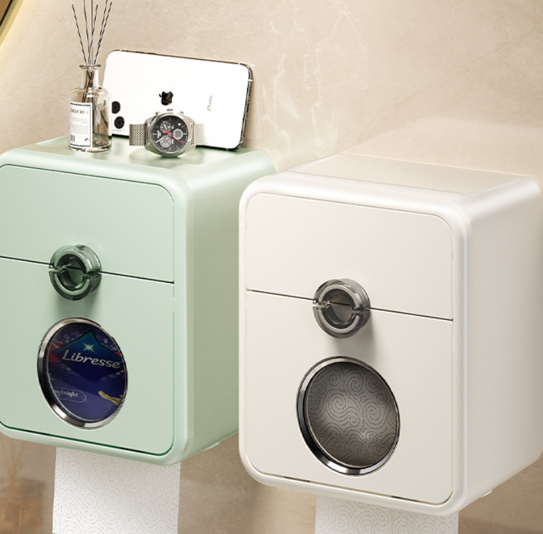 GREENSIDE Portarotolo da Bagno, Montaggio a Parete, Senza Foratura, Impermeabile, Portarotolo, Scaffale Portaoggetti