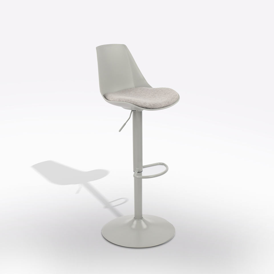 GREY STOOL WITH GREY FABRIC SEAT