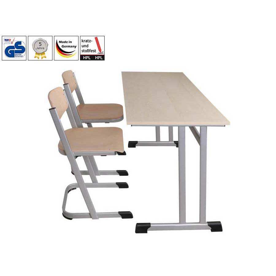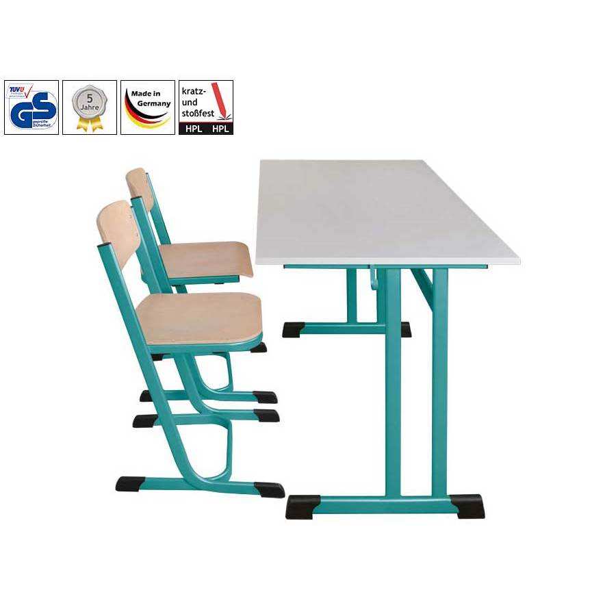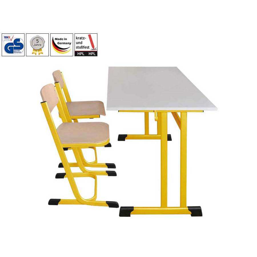 Arredamento scolastico: Tavolo per due studenti HPL, forma C doppia * certificato GS