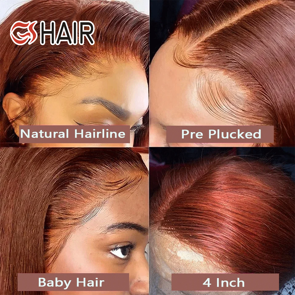 GS Reddish Brown Hair Lace Wigs #33 Color Human Hair 5x5 Lace Closure Wigs Body Wave Dark Auburn Human Hair Wig for Black Women