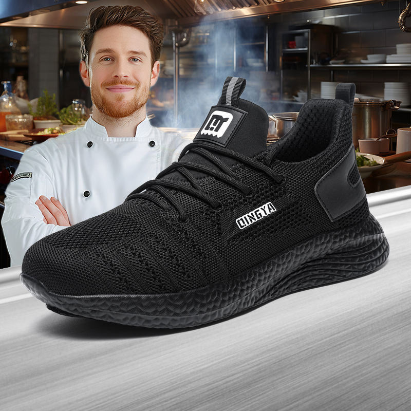 Scarpe da Chef GUYISA serie Slipper superiore tessuto antiscivolo in tessuto solido SRC nero suola da cuoco scarpe