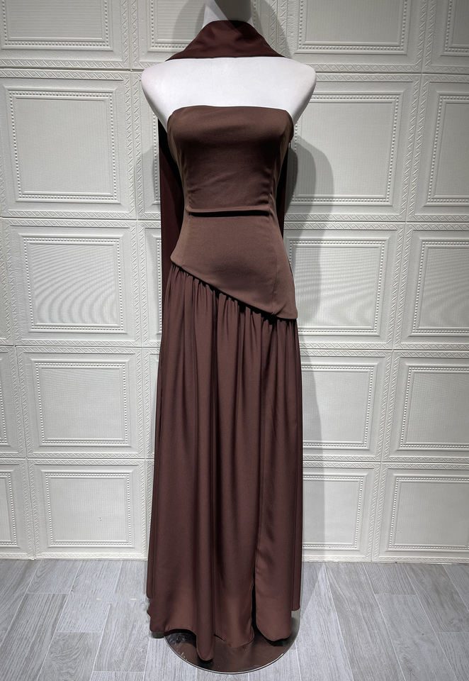 GX25088 Fashion 2025 High Quality Lady Summer Sexy Elegant Tube Party Split Maxi Dresses Evening Long Dress Women with Scarf