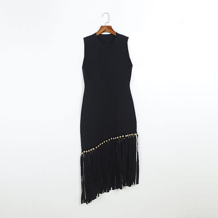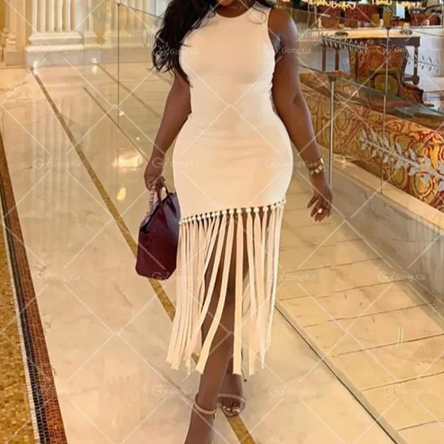 GX8039 Boutique 2025 Fashion Clothing Boutique Women Knitted Tassel Maxi Dress O-neck Sleeveless Elegant Casual Long Dresses