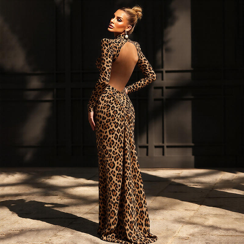 GY1177-2025 autunno/inverno nuovo arrivo moda donna Sexy a collo alto a collo lungo elegante abito stampato a maniche lunghe