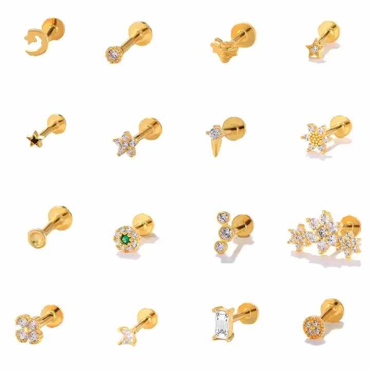 Gaby con anello con labbro a schiena piatta tragus orecchini piercing 925 in argento sterling con perno 18K placcato oro piercing gioielli all'ingrosso