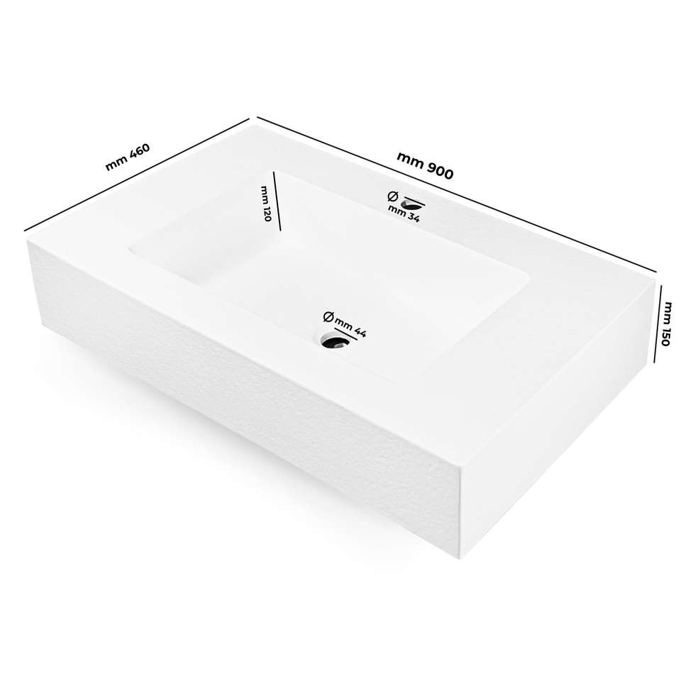 Gaia White Lullaby lavabo sospeso Top in marmo resina asfalto finitura 90x46x15 cm confezione da 1