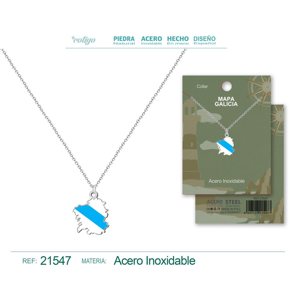 Collana Trendy in Acciaio Argentato con Ciondolo Mappa della Galizia, Placcatura in Oro con Diamante e Perla, Stile Classico Religioso per Anniversario