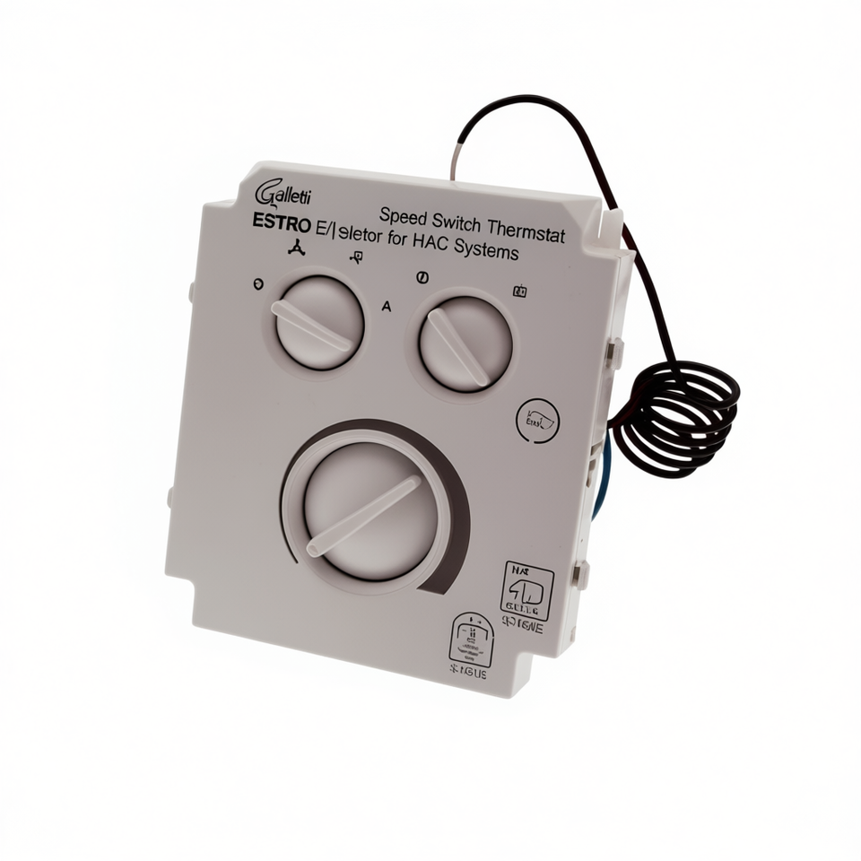 Termostato Galletti ESTRO con Interruttore di Velocità e Selettore E/I, Forma Rettangolare, Facile Installazione per Sistemi HVAC