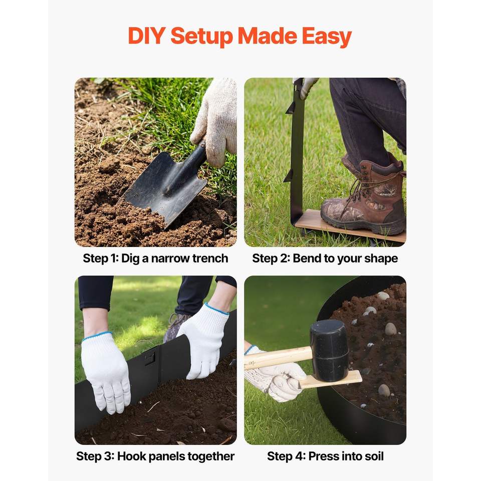 Bordatura per Giardino in Acciaio Zincato, Confezione da 6, 40 x 8,15 Pollici, Resistente e Facile da Installare, Guanti da Giardinaggio e Attrezzatura Protettiva