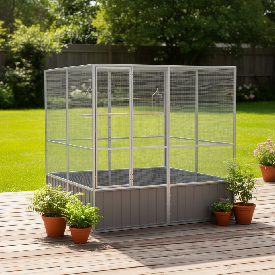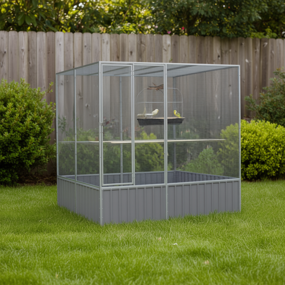 Galvanized Steel Bird Cage 84.1x85.6x83.3 In Gray Outdoor Durable Rectangle Bird Supplies