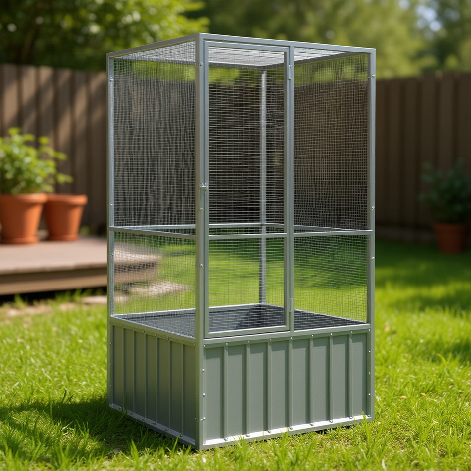 Galvanized Steel Bird Cage 43.7x42.1x83.3 In Gray Durable Indoor Bird Supplies