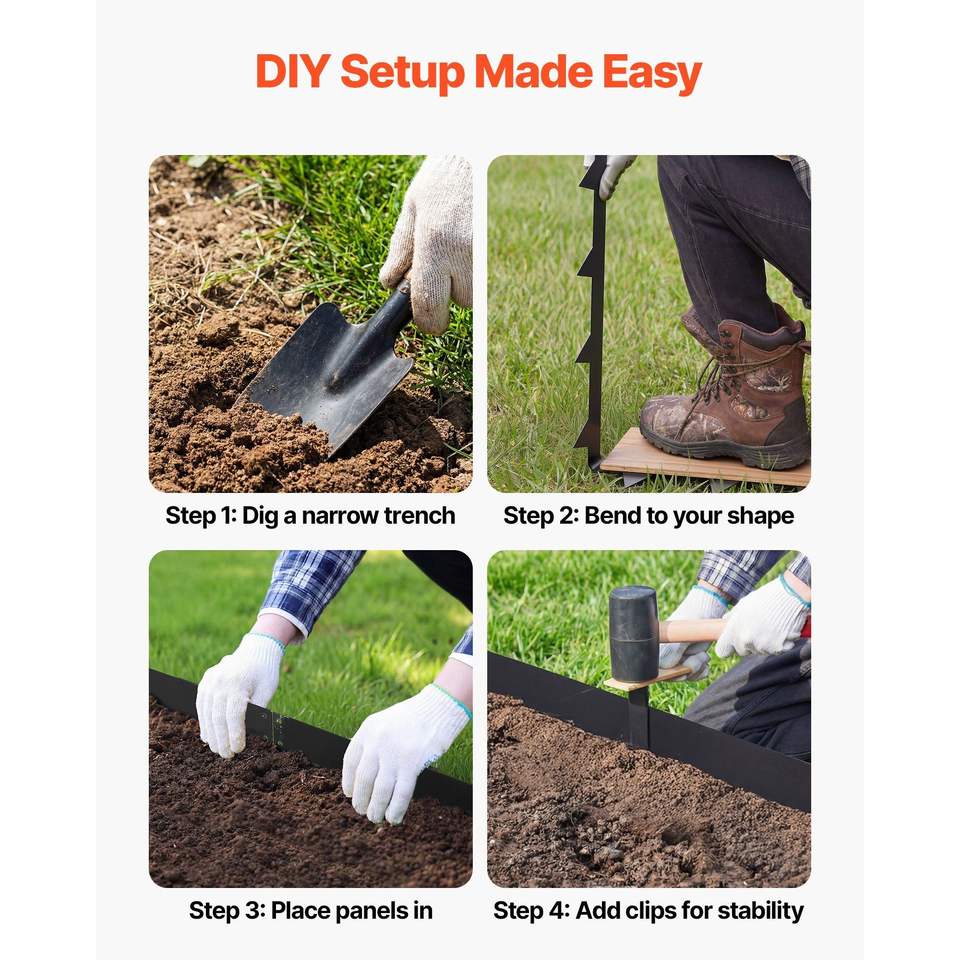 Bordatura per Giardino in Acciaio Zincato Resistente, Confezione da 10, 40 x 4,5 Pollici, Bordatura Metallica con 11 Clip di Montaggio, Bordatori Manuali