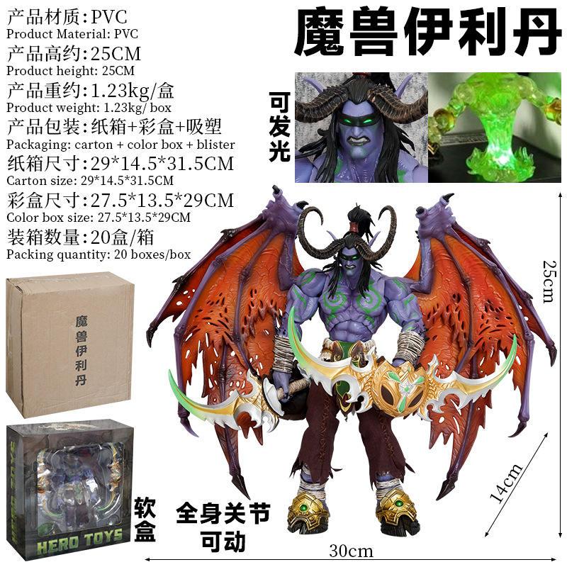 Game World of Warcraft- Figure 25cm Lllidan Stormrage Action Figures Statue Pvc Collectible Toy Movable Hands and Feet