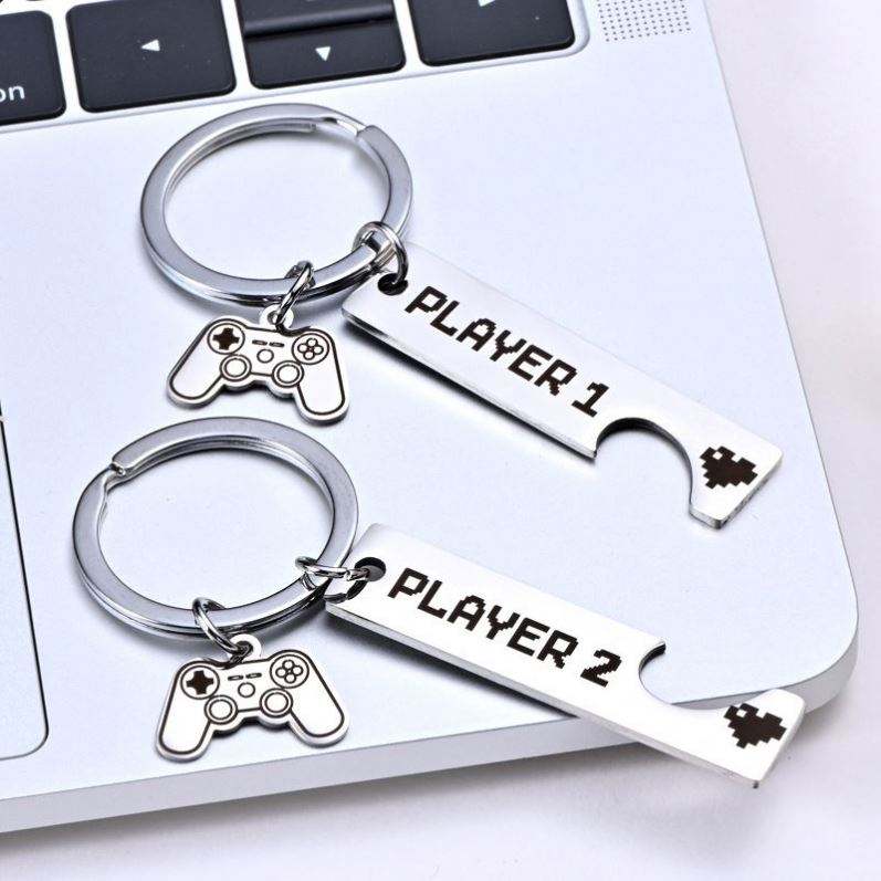 Gamer Player portachiavi divertente portachiavi per giocatore 1 2 coppie abbinate portachiavi ciondolo in metallo regalo di san valentino portachiavi