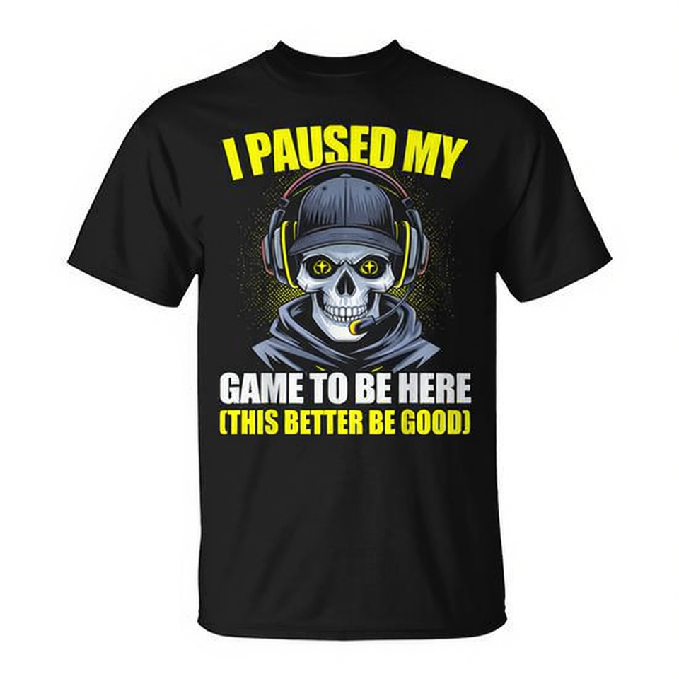 T-shirt Gamer Skeleton nera, taglia piccola, manica corta, stampa digitale, abbigliamento da gioco unisex con scollo rotondo