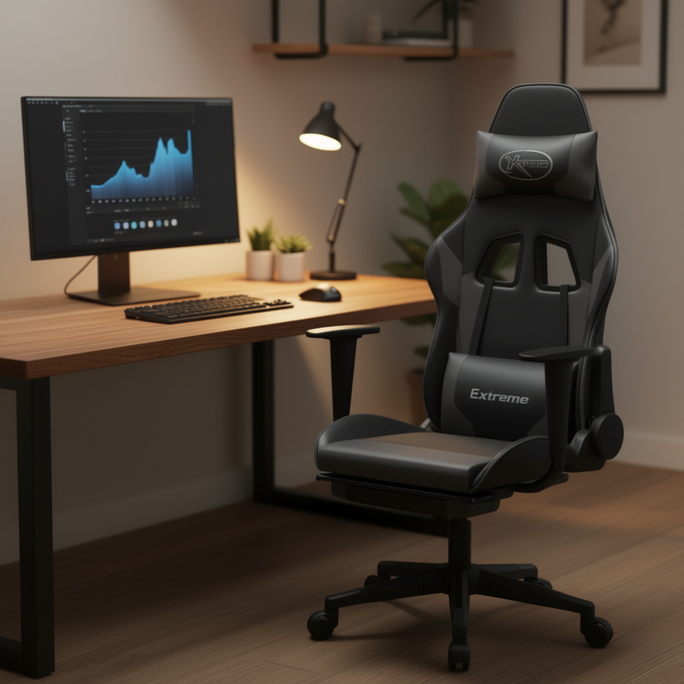 Sedia da Gaming in Ecopelle con Braccioli Regolabili, Base Girevole e Reclinazione Manuale, Sedia da Ufficio