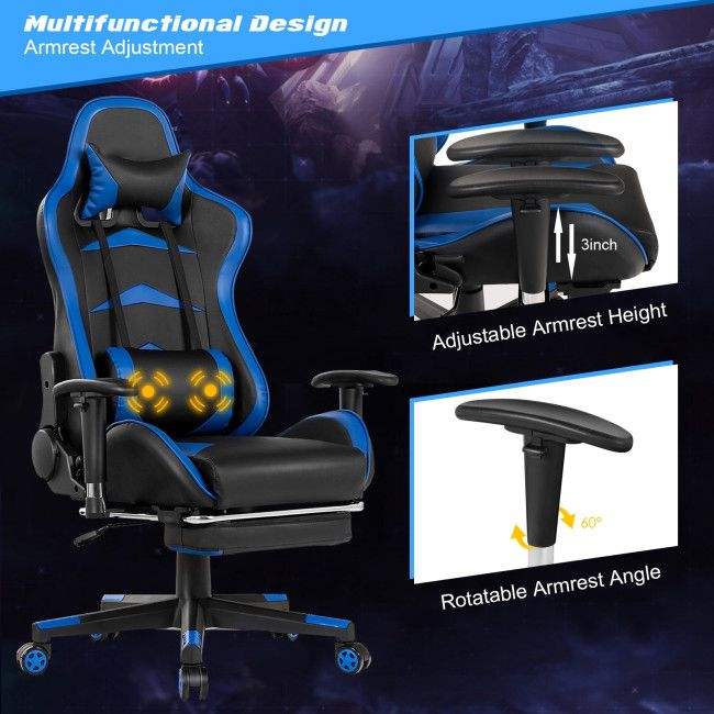 Sedia da Gaming con Funzione Massaggio e Poggiapiedi