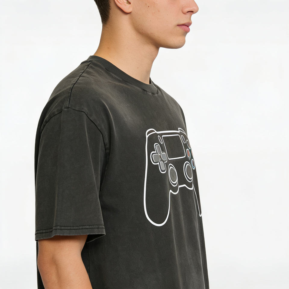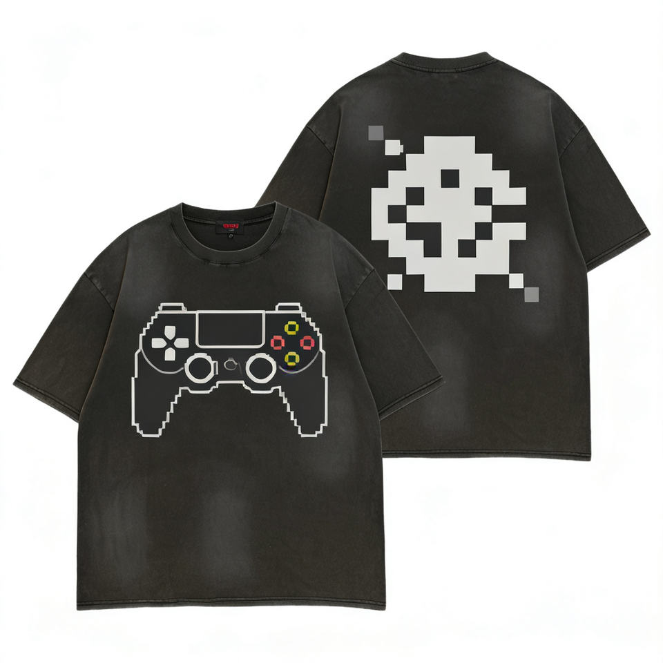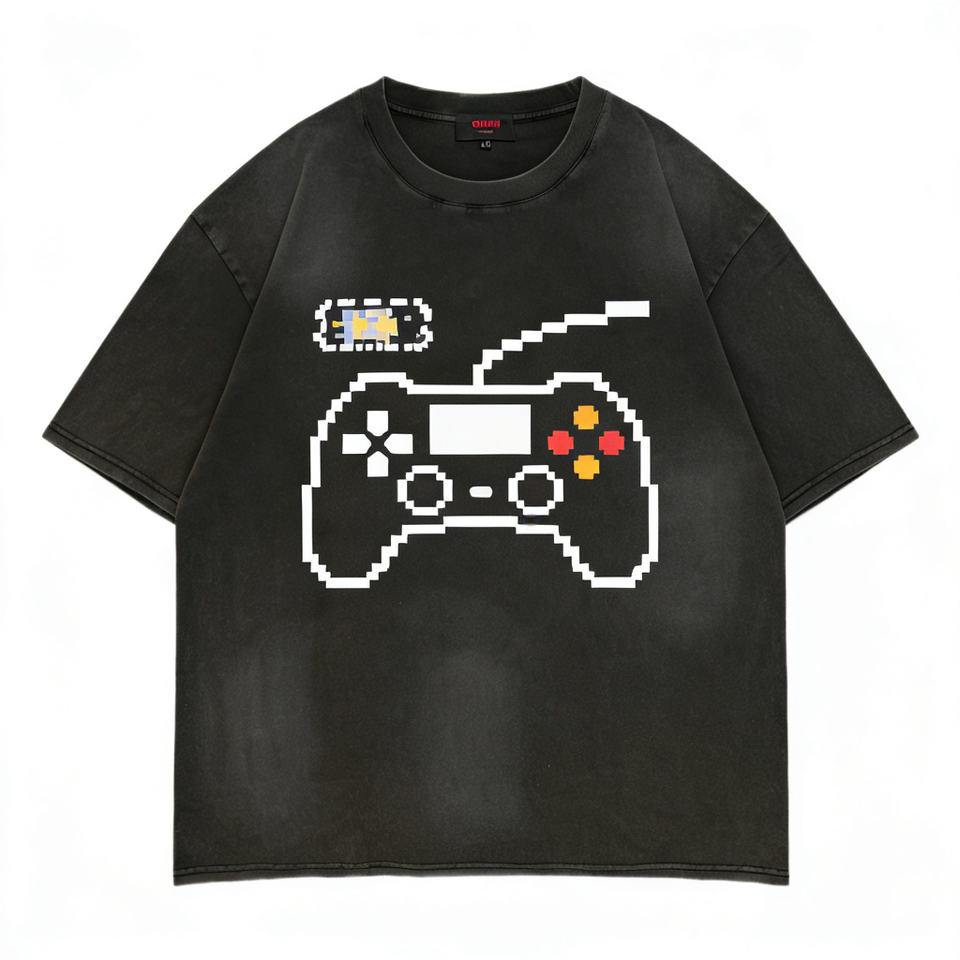 T-shirt da uomo con controller di gioco, oversize, in cotone nero, Pixel Art Game Fashion