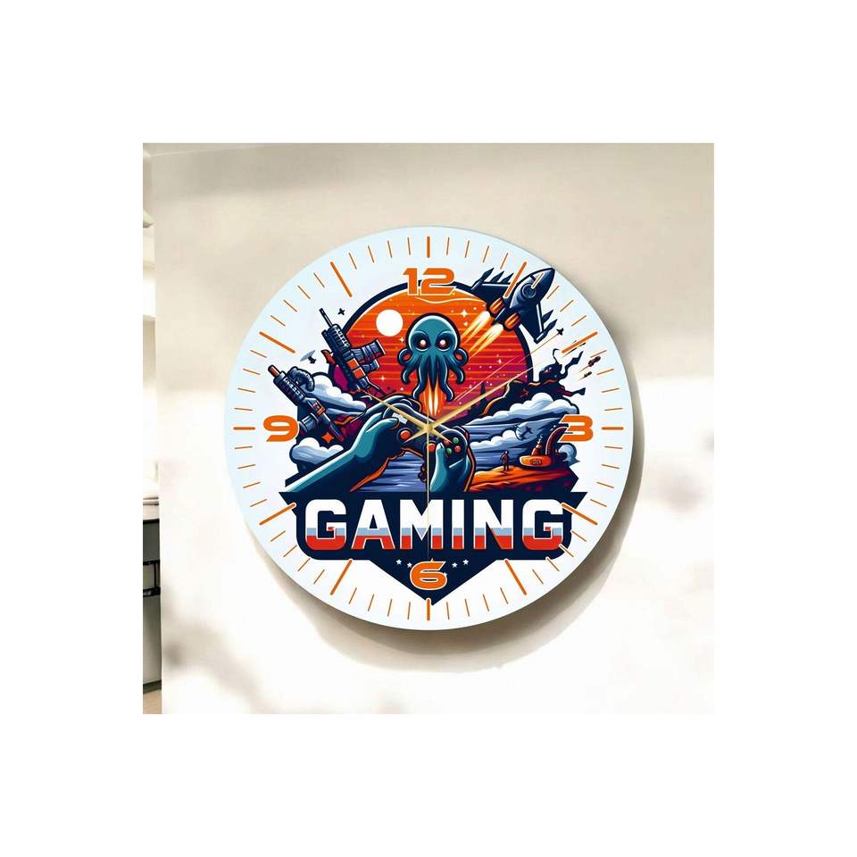Gaming Written orologio da parete da 50cm silenzioso in legno regalo con gioco a tema stampa a colori