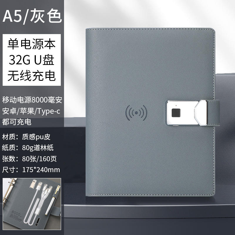 Gangtong Wireless Charging Fingerprint Lock Notebook Custom Power Bank with USB Flash Drive Office Notepad Loose-leaf Notebook