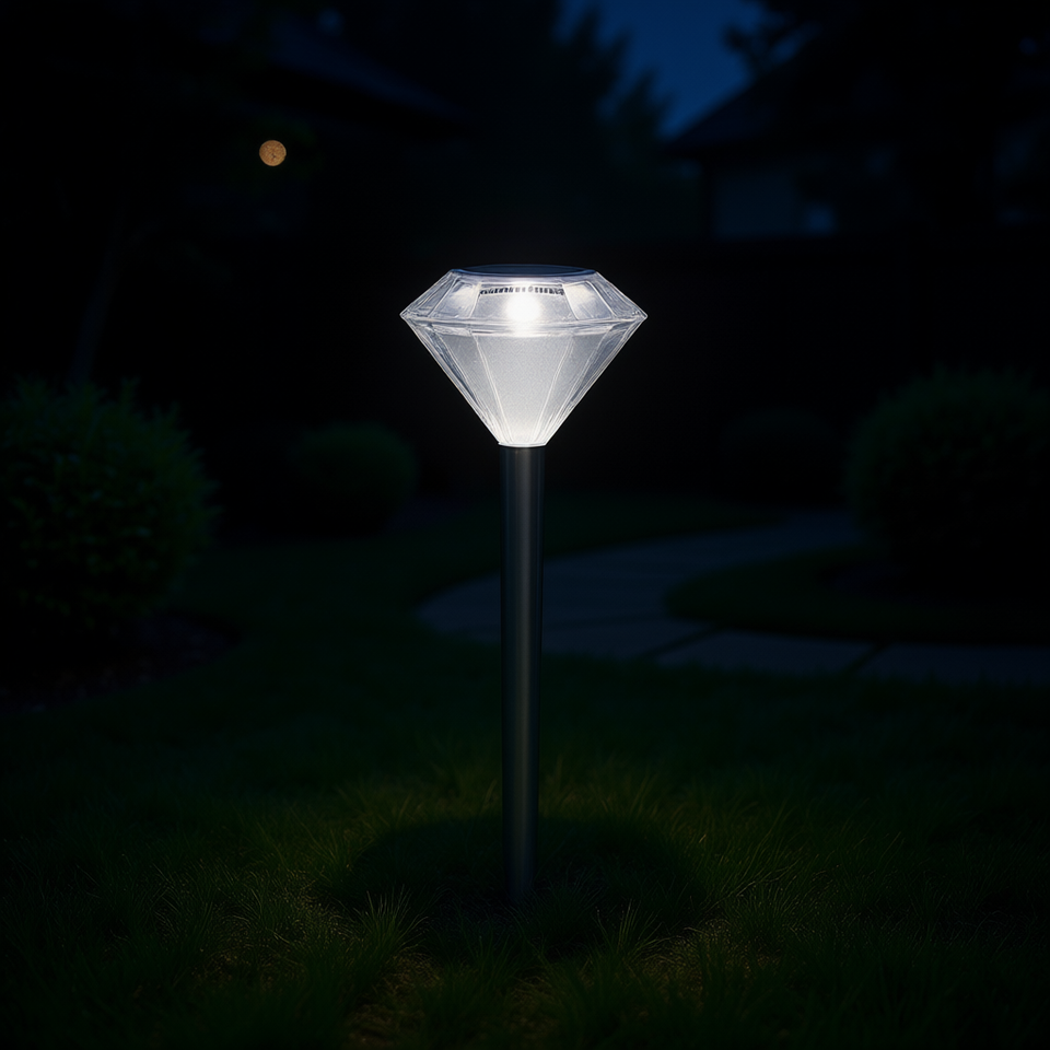 Lampada Solare LED da Giardino a Forma di Diamante, IP65 Impermeabile, Lampada da Esterno per Sentieri, 7 Colori Cangianti, Decorazione in Cristallo
