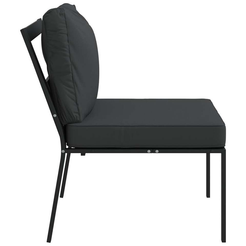 Set di 2 sedie da giardino con struttura in acciaio nero, cuscini in tessuto, mobili da esterno in stile contemporaneo