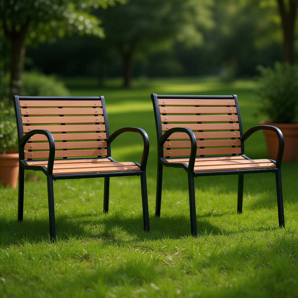 Set di 2 Sedie da Giardino in Acciaio e WPC, Design Standard, Mobili da Esterno Impermeabili
