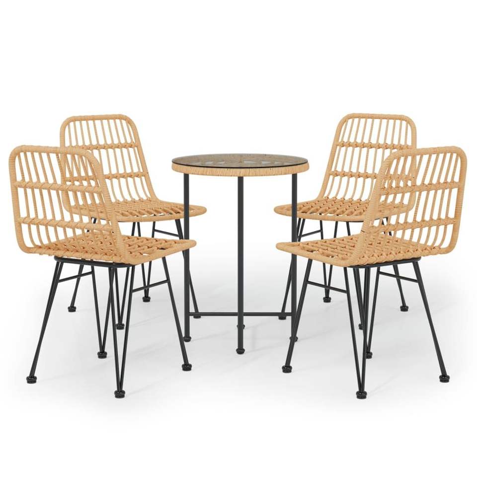 Set da Pranzo da Giardino 4 Posti con Telaio in Acciaio Nero e Rattan in Polietilene, Arredamento da Esterno Contemporaneo Resistente alle Intemperie