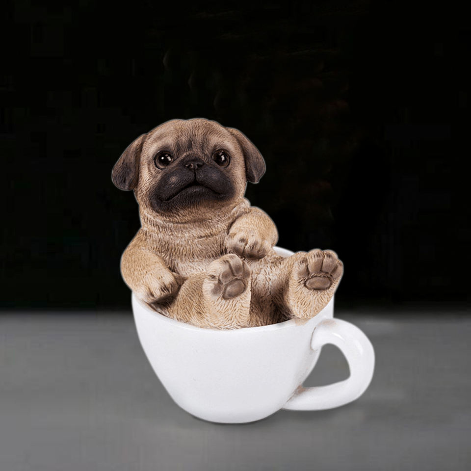 Garden Funny Resin Pug Dog Sitting in a Cup