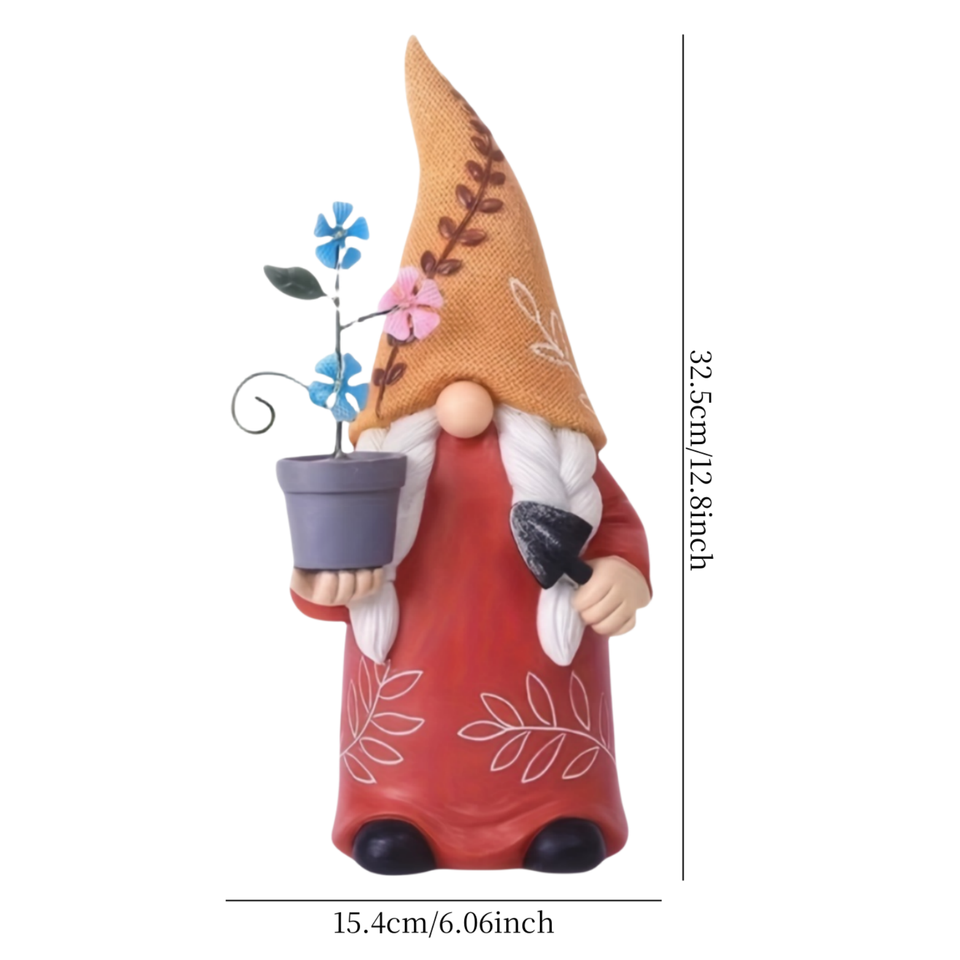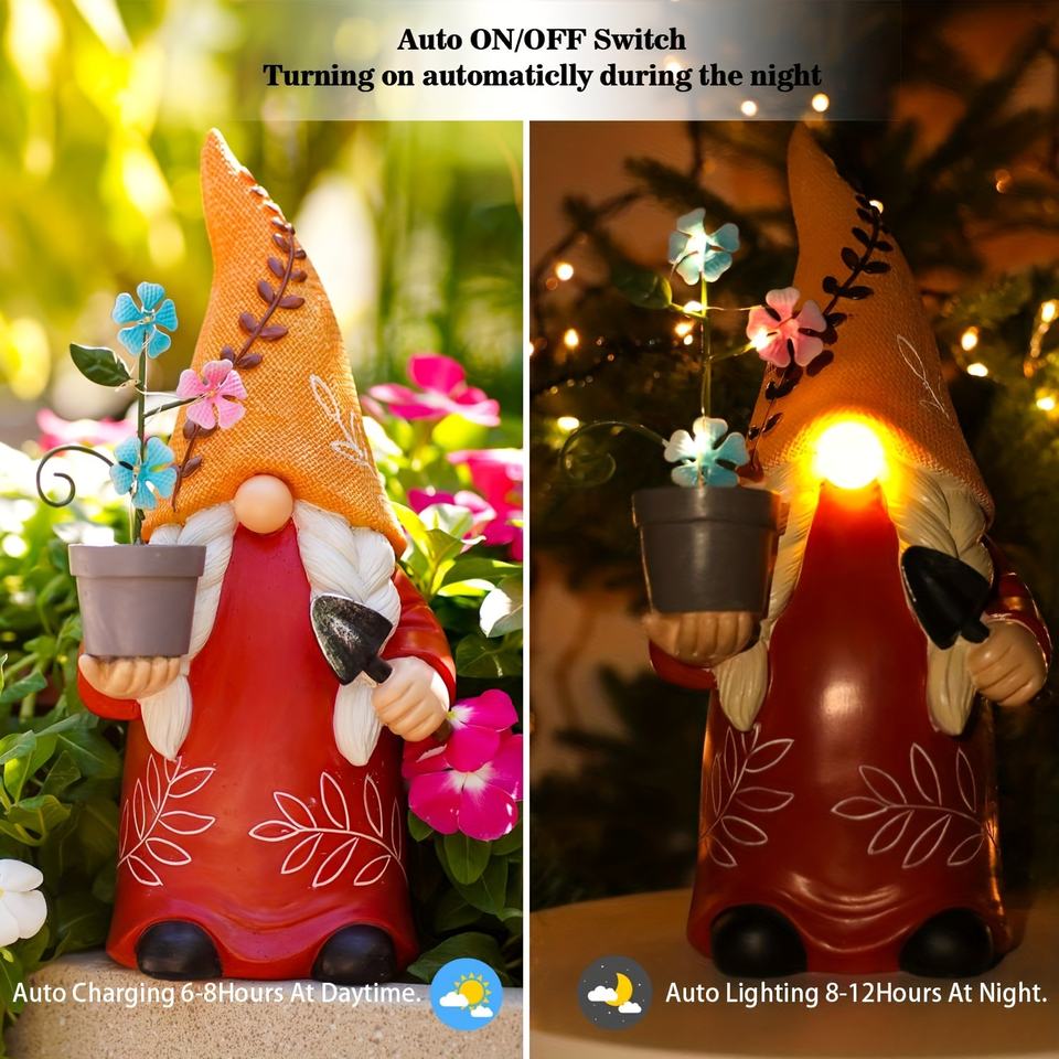 Garden Gnome Decorations Outdoor, Garden Solar Gnome Statue Light, Resin Solar Energy Dwarf with Flower Pot Shovel Statue Light