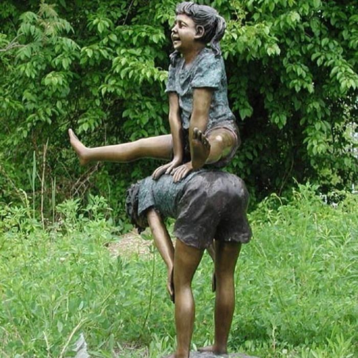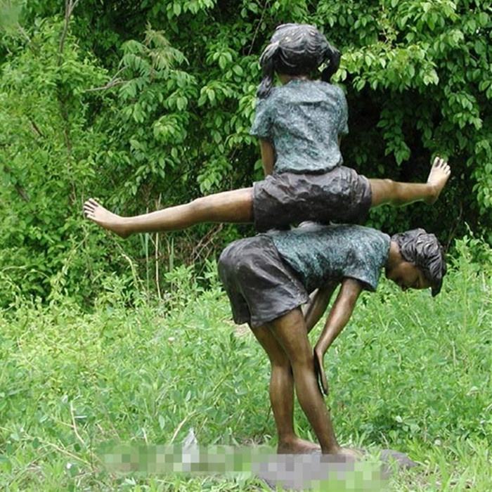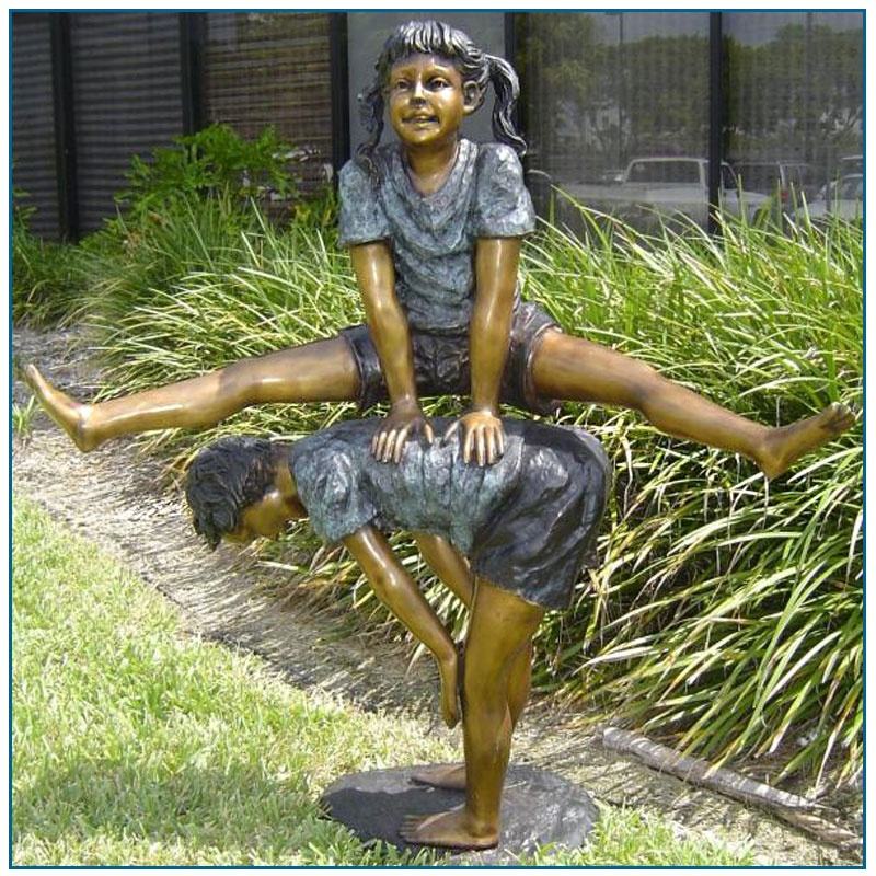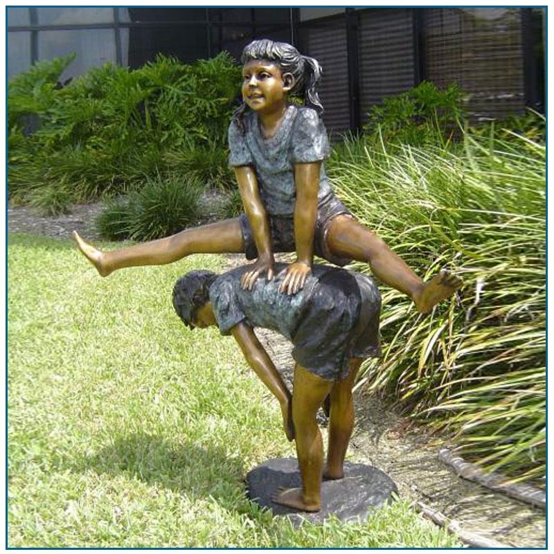 Item:Garden Life Size Bronze Leap Frog Boy and Girl Statues Sculptures