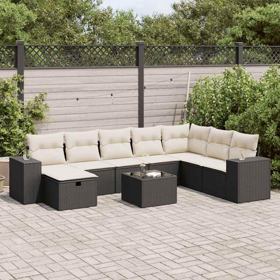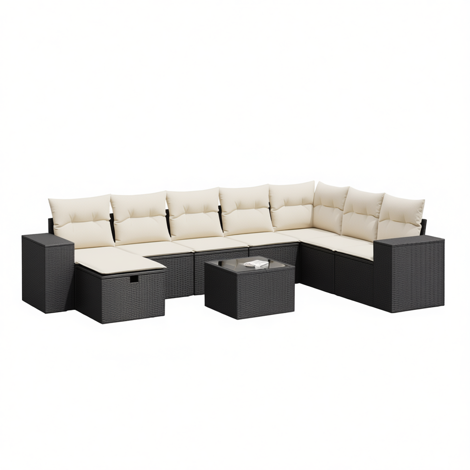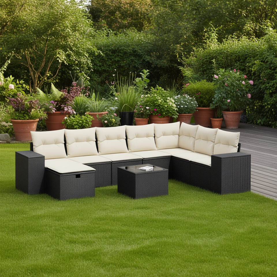Set Divano da Giardino in Rattan PE Nero con Cuscini in Schiuma ad Alta Densità per Uso Esterno Design Contemporaneo